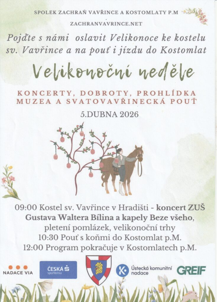 Spolek Zachraň Vavřince a Kostomlaty p. M. připravil na velikonoční neděli dne 5.4.2026 akci nazvanou prostě „Velikonoční neděle“. Nejdříve se v kostele sv. Vavřince v Hradišti konal od devíti hodin koncert bubeníků ze třídy